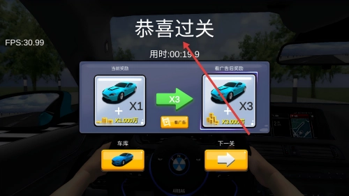 1. 在车库中挑选已解锁的车辆,点击箭头即可进入关卡,从而开启驾驶挑战。