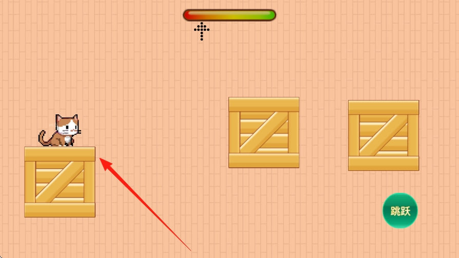2. 引导猫咪在木箱之间进行跳跃,留意保持血量上方的血条,借助连续不断的跳跃动作,成功抵达关卡的终点。