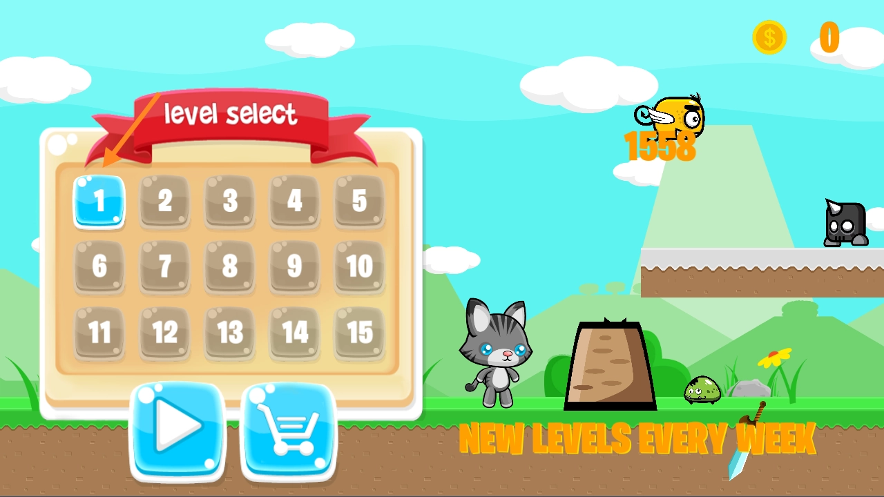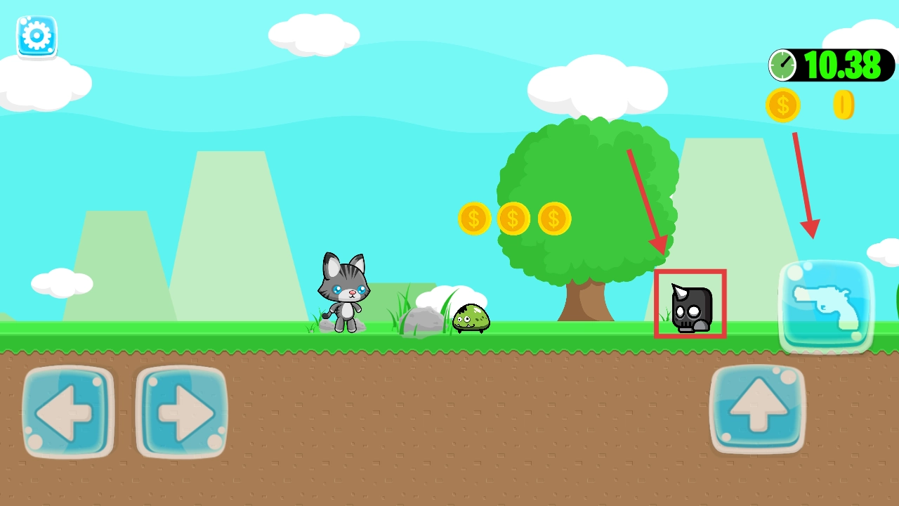 2. 通过左右键操控猫咪移动,碰到障碍时按上键跳跃。