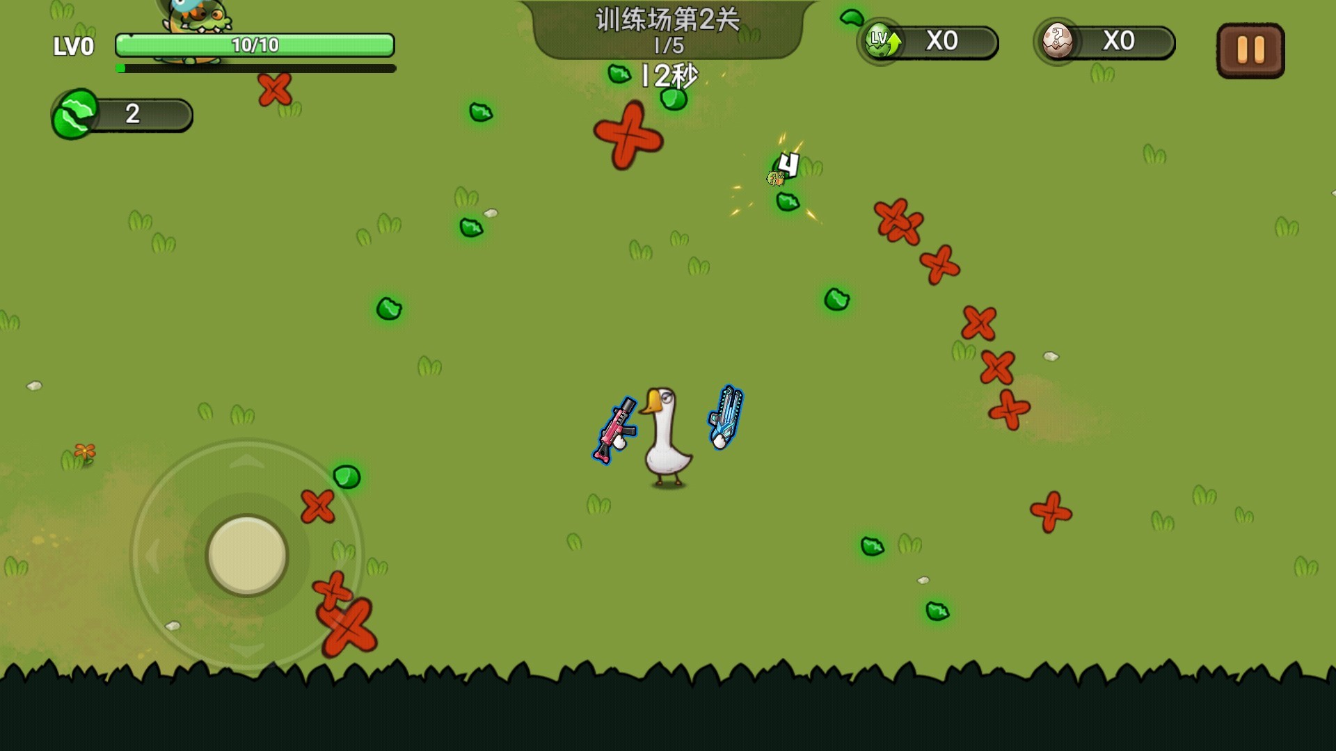 1. 在战斗过程中,玩家需持续走位以躲避怪物,在成功击杀怪物后,拾取地上的绿色物品。