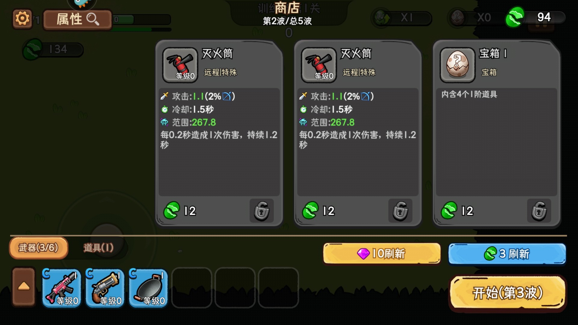 3. 解锁商店功能,耗费更多金币,购置大量武器。