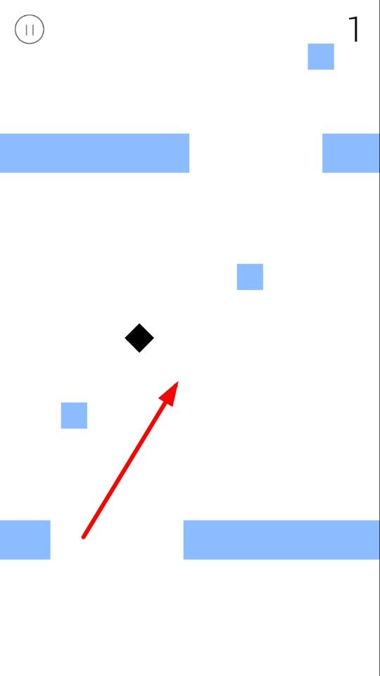 2、简单操作与硬核挑战并存:只需点击屏幕左右来控制跳跃,新手很容易上手。然而,密集的障碍以及极为灵敏的失败判定——碰到黑色就失败,带来了硬核的游戏体验。这种魔性设计,有强迫症的玩家可要慎重考虑。