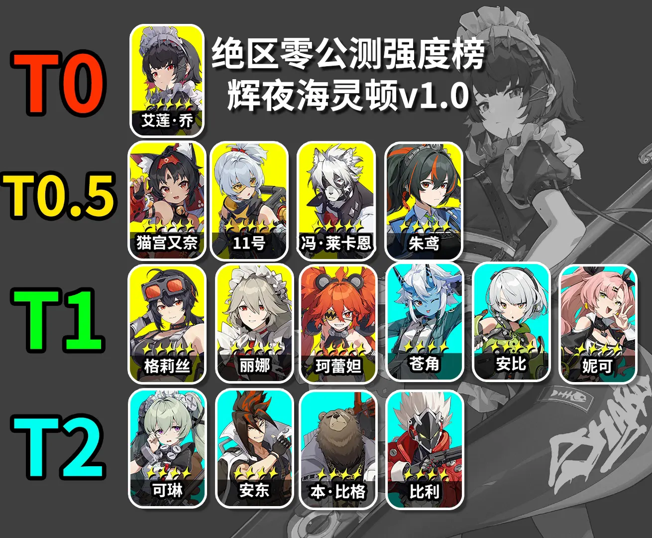 T0.5梯队:紧跟T0梯队之后,该梯队角色自身强度颇高,然而未必契合当前版本,却依旧能够充当阵容搭建的核心。