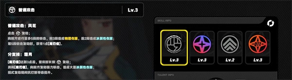 雅的普通攻击“风花”,总共包含五段攻击。其中,前三段为物理性伤害,后两段则附带冰属性伤害。每次发动第五段攻击,都会激活1点魔刃值。此外,雅还有一个分支技能“霜月”,在实战中积累三次第五段伤害后,长按普攻,就能施展强力的冰属性斩击。