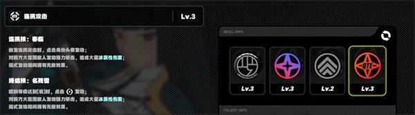 雅的大招名为名残雪,这是她的终结技。当能量达标后,发动此大招能造成高额冰属性伤害,且发动瞬间拥有无敌效果。若触发支援技,还能辅助前场。因此,雅属于那种只要大招就绪就释放的角色。
