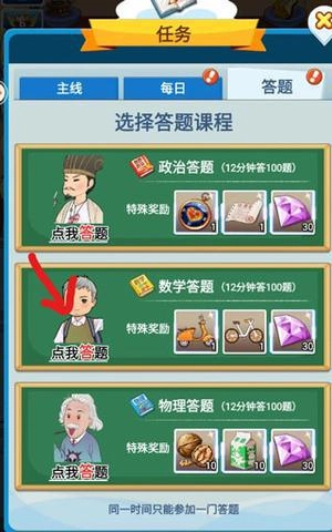 很多新手不知道限时答题该怎么做,结果白白浪费了机会。限时答题在每日任务活跃度达到150后开启(若完成25级主线任务,即便活跃度不到150也能开启限时答题)。开启后,依据奖励内容挑选一个科目,接着让对应科目的老师授课,在规定时间内完成相应的上课答题数量即可(建议优先选择奖励摩托车的科目,要是已有摩托车,就选奖励教研币的科目)。例如,你选择英语作为限时答题科目,那就选择英语老师上课。要是此时已有其他老师正在授课,退出游戏重新登录,这样就能重新挑选上课老师了。