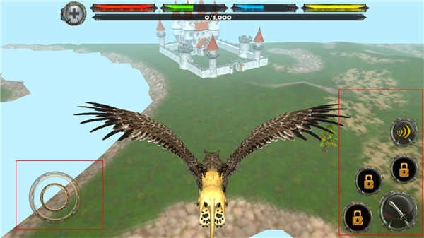 2、在游戏里,左屏幕能够操控狮鹫移动的方向。