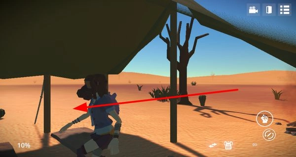 2、踏入场景后,可通过滑动屏幕右侧,灵活地操控角色移动,在营地及其周边区域尽情展开探索。