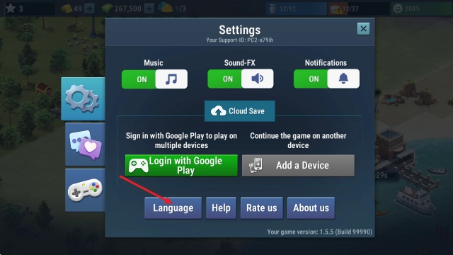 2、接着点击language选项。