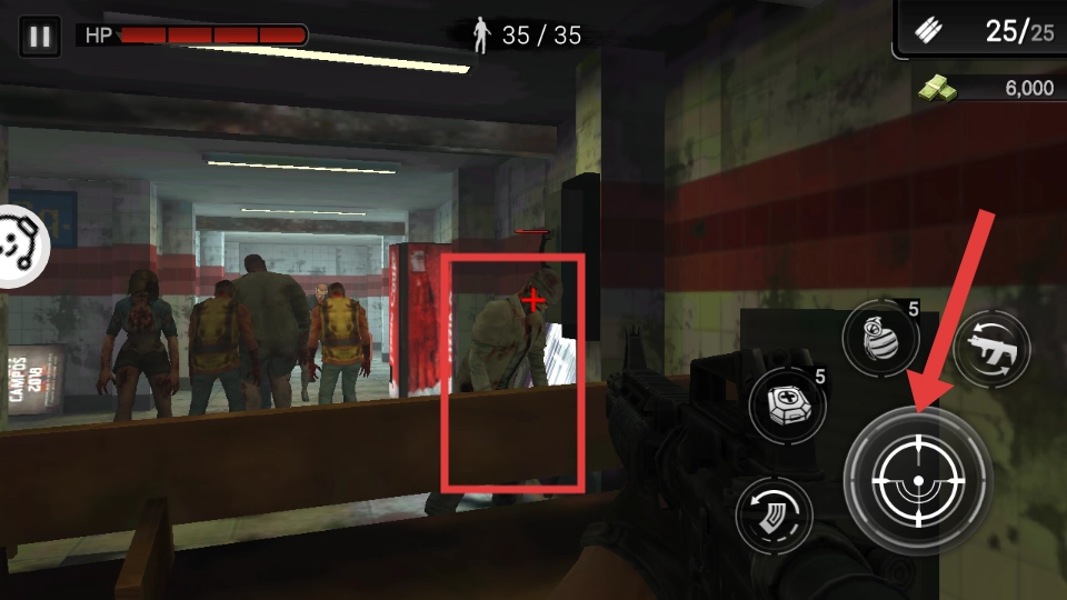 2. 进入关卡之后,在红框范围内滑动来瞄准僵尸。