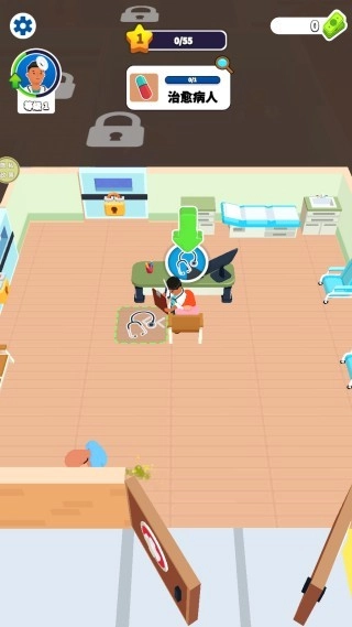 1. 模拟扮演医生,乘坐车辆抵达工作场所。通过滑动屏幕引导医生前往诊所,只需打开门,便可顺利进入。