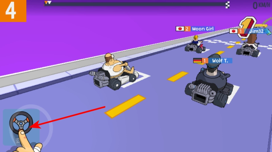 2、借助左侧方向盘按钮操控赛车变道,使其在赛道上灵活变换车道,巧妙避开其他赛车,从而抢占到有利位置。