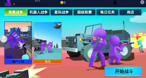 3、我挑选的是像素战场中的僵尸小镇,建议使用的武器为超级激光,你能够点击进入战斗。