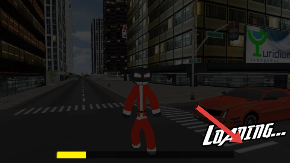 1. 当处于游戏加载界面时,映入眼帘的是身着红色服装的火柴人角色以及城市街道的场景。待加载完毕,便会正式进入游戏,开启一段精彩的城市冒险之旅。
