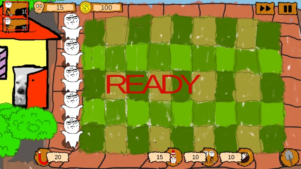 1. 在开局的READY阶段,花费金币在左侧挑选兵种,然后拖曳到草坪方格上布置防线,以此准备抵挡幽灵敌人的攻击。