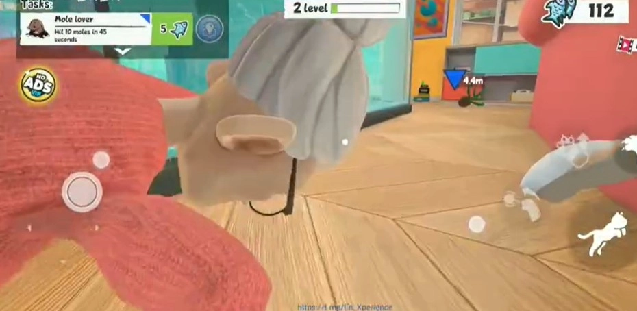 在游戏里,我们将以第一人称视角操控猫咪,左侧的摇杆用于控制移动。