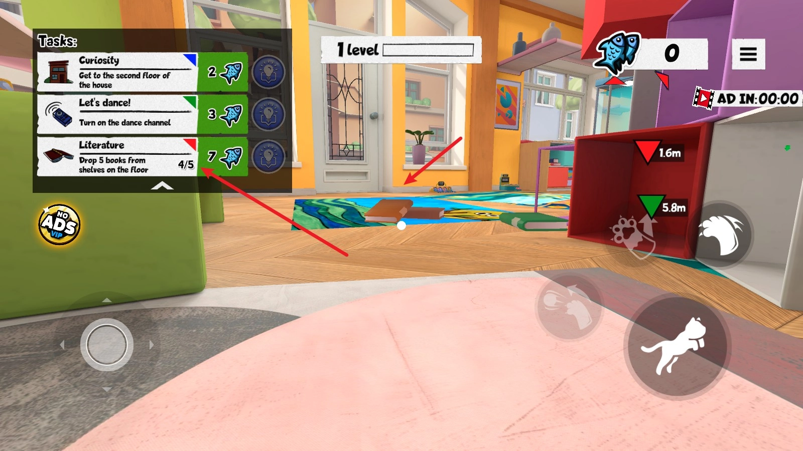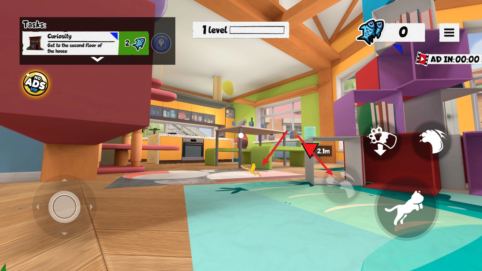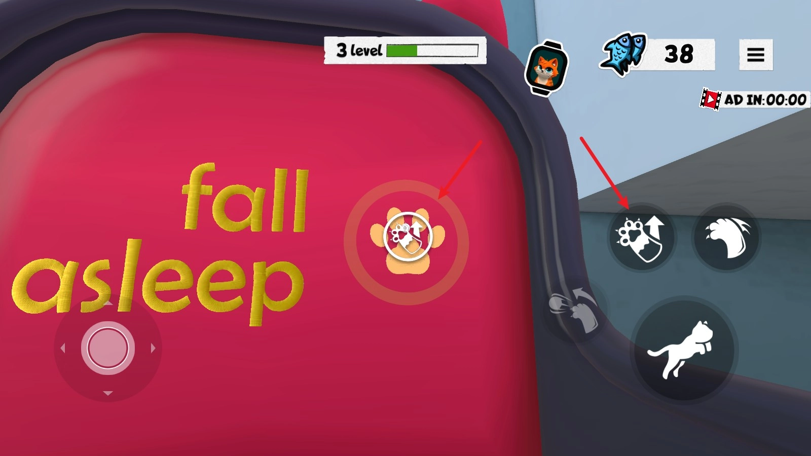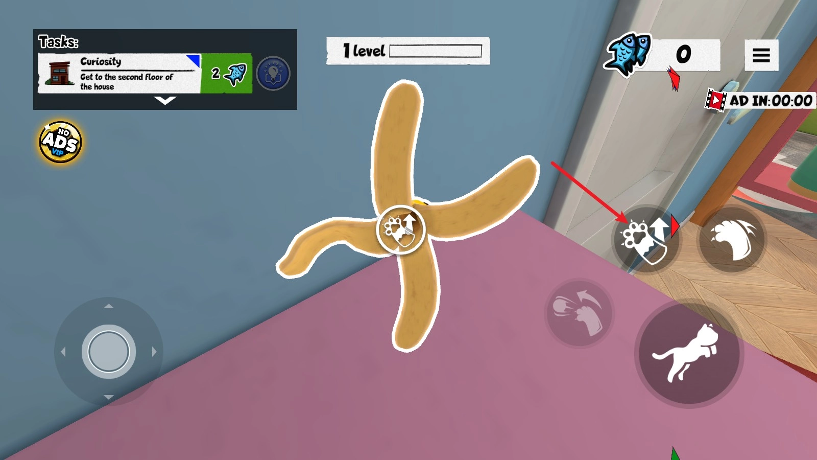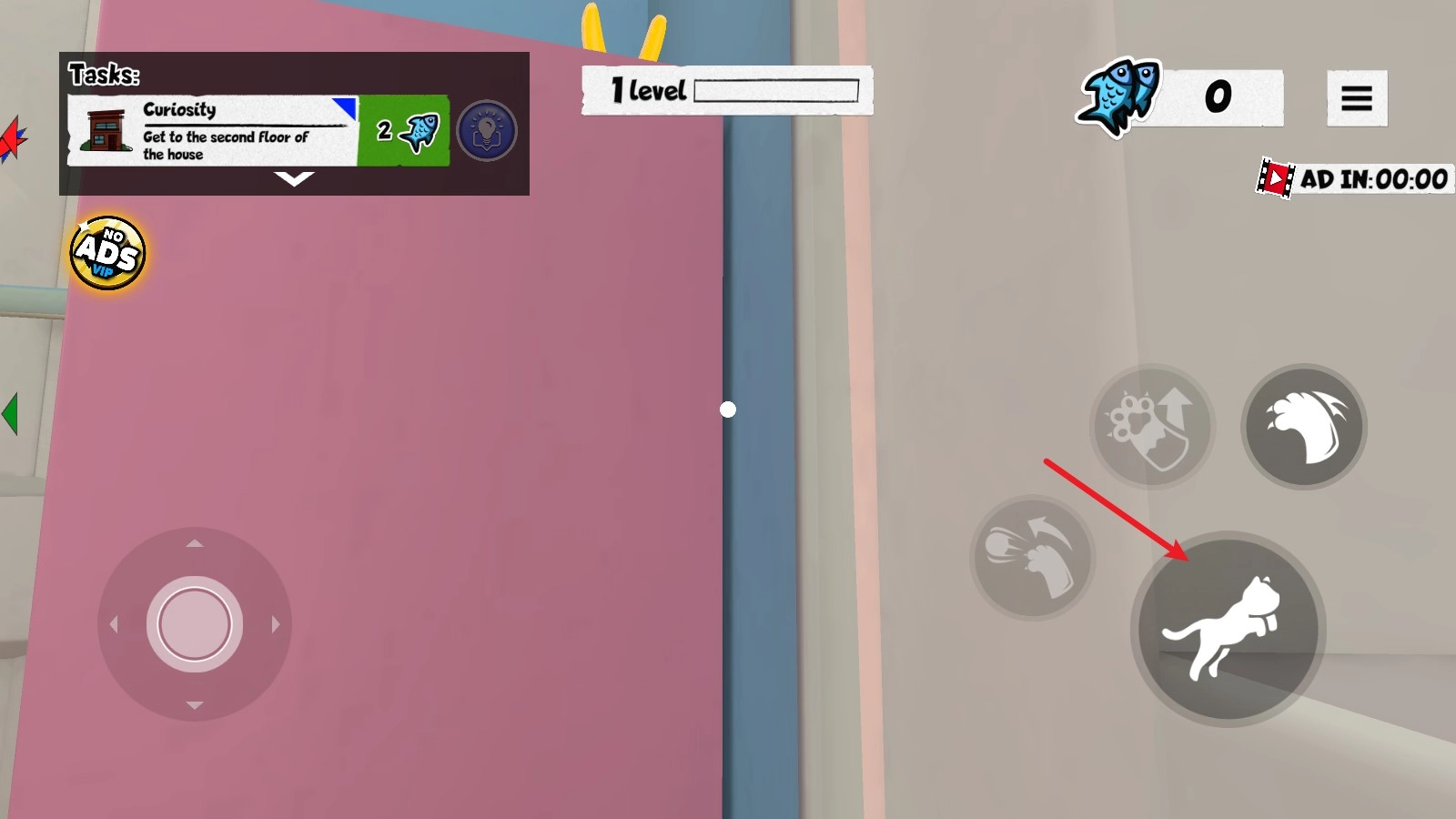右侧的跳跃键可以帮助猫咪跳上各种桌子或者柜子。