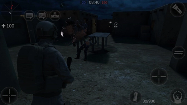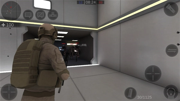 进入游戏后,左侧区域可操控角色移动,右侧区域用于射击操作,同时右上方还能开启手电筒功能。