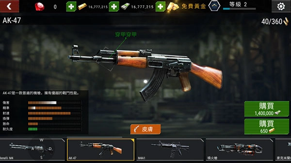 在游戏里收集钞票和金条,用来升级或更换武器,能增强武器威力,让对抗僵尸变得更轻松。建议玩家在前期集中资源升级某一件武器,不用给所有武器都升级(钞票和金条储备充足的玩家可以无视这条建议),这样做武器威力的提升效果会比较显著。