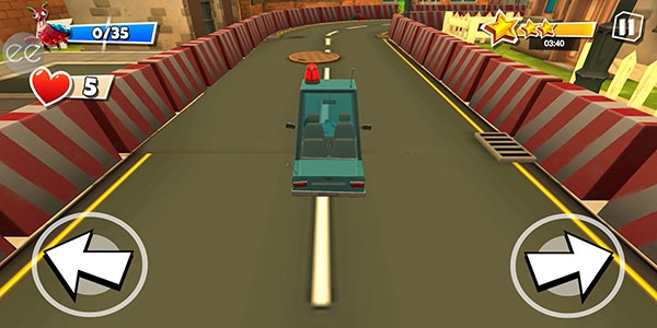 在驾驶过程中,赛道上会出现一些堆放的盒子,我们得尽量避开它们,不然就会减少生命值,也就是左边爱心的数量。