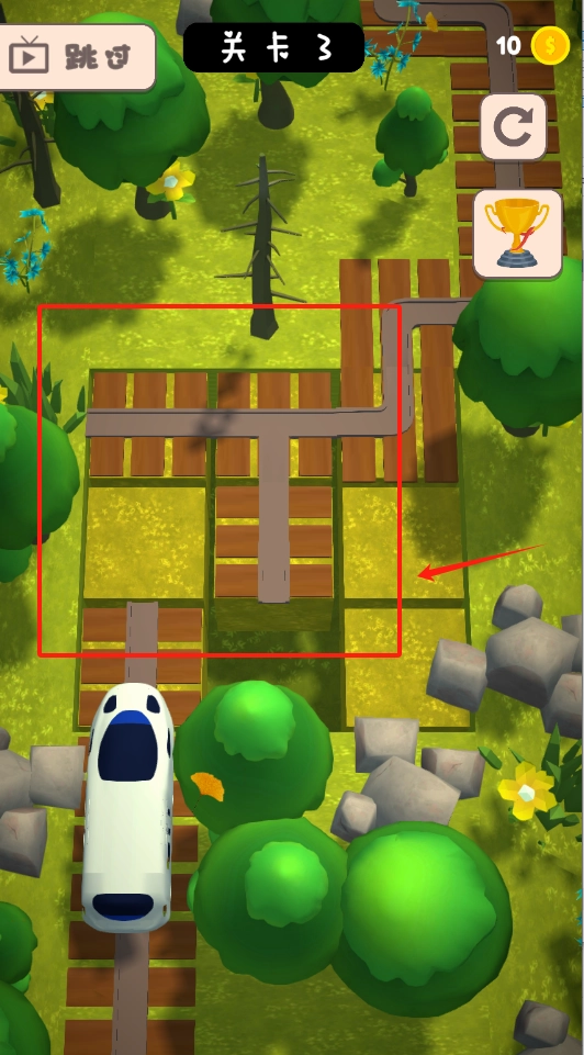 在第三关的T字路口处,你可以选择不同的行进路线;同时,也能通过点击操作来跳过当前环节,或者重新开始这一关卡进行再次尝试。