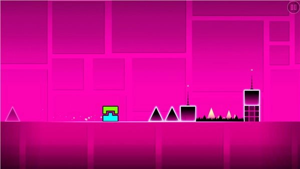 在游戏里,你要操控那个小小的方块角色,让它持续地进行跳跃动作,以此来达成更多不同类型的挑战目标。