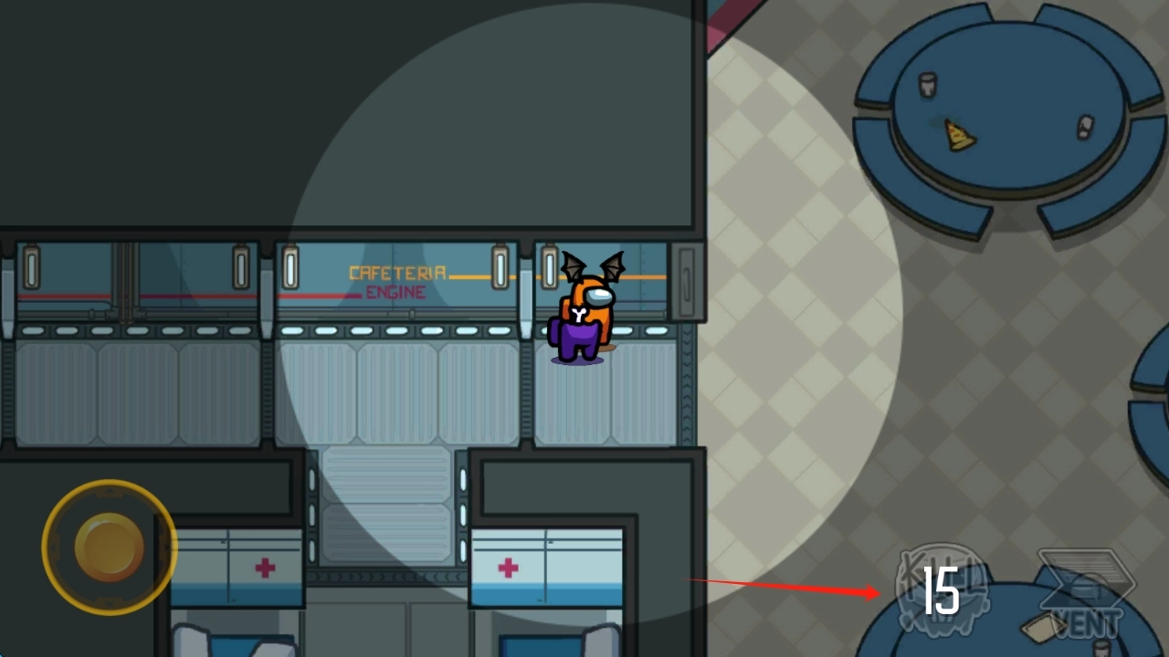 进入游戏场景后,通过滑动左侧摇杆来操控角色移动,你可以选择探索飞船以完成任务,或是隐藏自己的身份,也能拨动轮盘来移动人物。