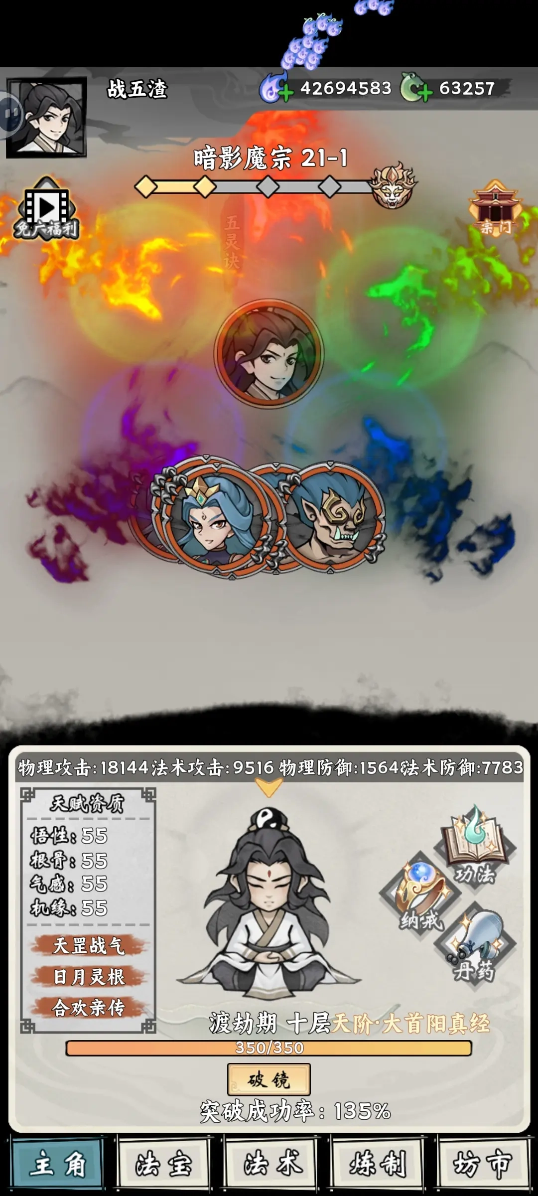 游戏允许玩家刷新初始资质,若能获得逆天的开局资质,便可快速提升修为。