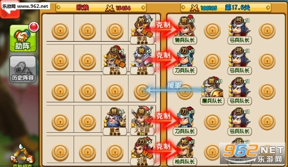 每个武将都具备其专属的兵种特性:枪兵对骑兵有克制作用;刀兵能克制枪兵;盾兵可同时克制弓兵与弩兵;弓兵克制刀兵;弩兵则对骑兵有克制效果;骑兵同样克制刀兵。此外,武将还有各自独特的职业技能特点,所以排兵布阵时的位置安排极为关键。例如,盾兵类型的武将通常血量较高、擅长防御,适合部署在前排;弓兵和弩兵以输出和辅助为主要职能,且擅长攻击,适合安排在中排和后排。如何巧妙搭配前中后排的武将,并利用兵种之间的克制特性,是决定决战胜负的关键因素。