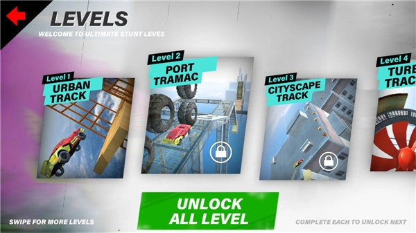 在激情澎湃的赛车赛道上风驰电掣,持续挑战自身极限,攻克一个接一个让人热血偾张的高难度跳跃、极速环道等关卡,每达成一次突破便能解锁全新赛道,解锁的瞬间满是成就感。