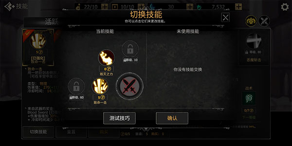 升级完成的技能,可点击左下角的【切换技能】按钮,将其配置到快捷键位上。