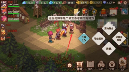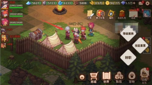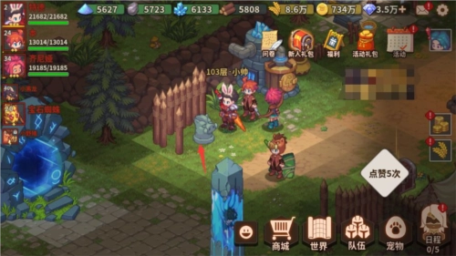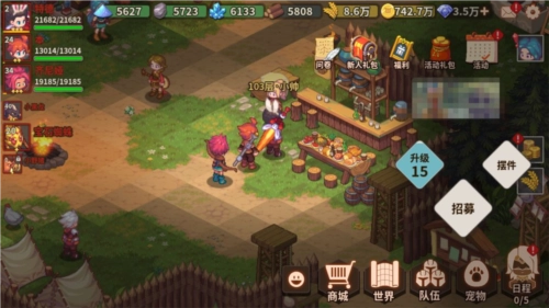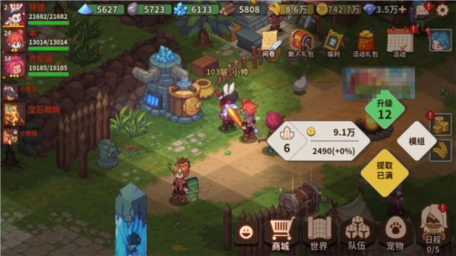 42目前已打到42层,刚解锁宠物系统。宠物的生存能力较弱,容易阵亡,但能提升队员的能力值。不过宠物升级需要消耗木材,而且宠物饲料的收集难度很大。