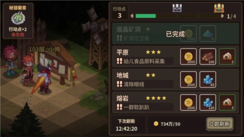 看板是用于完成每日任务的场所,每天能进行4次任务。完成任务可一次性获取大量基础建材,其中完成第二个和第四个任务还能得到宝箱。需要注意的是,看板的五星难度与深渊层数相关联,如果超出自身战力过多,五星任务会非常难打。