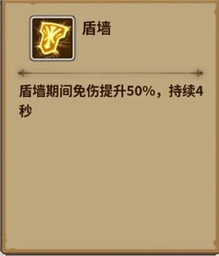 它具备稳定的高额减伤能力,不过减伤的覆盖时长较短,转职前该技能持续4秒、冷却12秒,在游戏前期实际带来的减伤效果比不上跳跃斩,首次转职建议挑选盾墙恢复。