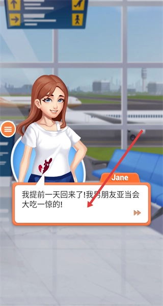 在机场场景触发剧情后,跟随Jane的对话来了解故事背景,注意文本的推进节奏;这会开启后续的换装环节与关卡任务,建议提前熟悉角色设定,为接下来的装扮挑战做好准备。