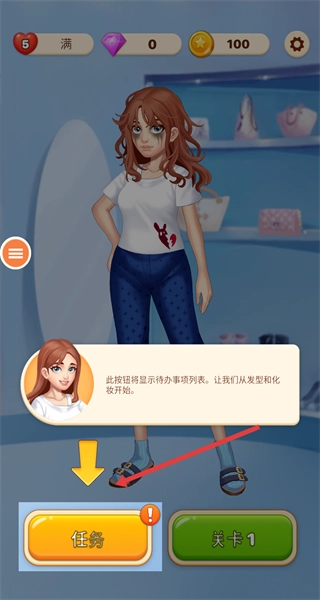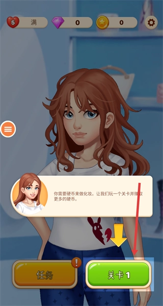 完成任务引导后,选择开启关卡,通过消除玩法获取金币,用这些金币购买装扮道具,以此推进角色形象改造,进而开启时尚挑战。