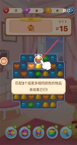 在关卡里按照提示,把3个及以上相同颜色的物品(比如橙色上衣)匹配到一起,集中注意力在目标衣物上,快速凑成一组来触发消除效果,只要完成规定的收集数量,就能顺利通过这一关卡。