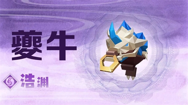 夔的外形像牛,仅有一只脚,全身呈现青苍之色。在风雨里发出的吼声如同雷鸣,还伴随着日月般的光芒。夔牛的头顶有一面战鼓,鼓声能够对敌人造成伤害并使其眩晕。它擅长突击近战,战斗力非常强大。