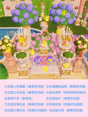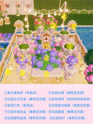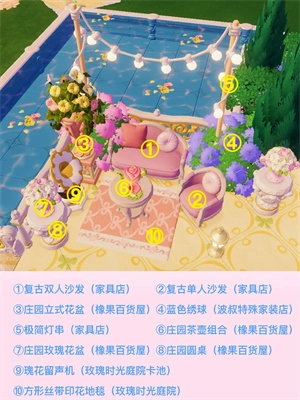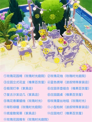 游戏里的家具绝大多数来自玫瑰时光庭院,还有橡果百货屋。