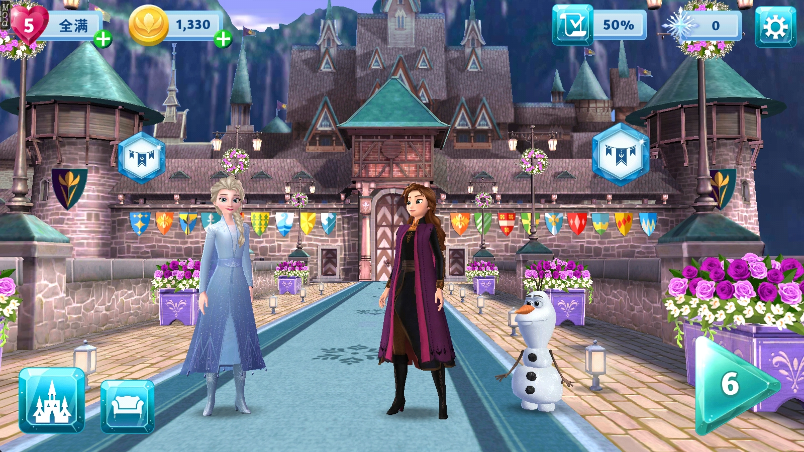 玩家能够随着三消关卡的推进以及定制王国的过程,重温冰雪奇缘的历险旅程,感受更多电影之外的精彩故事。