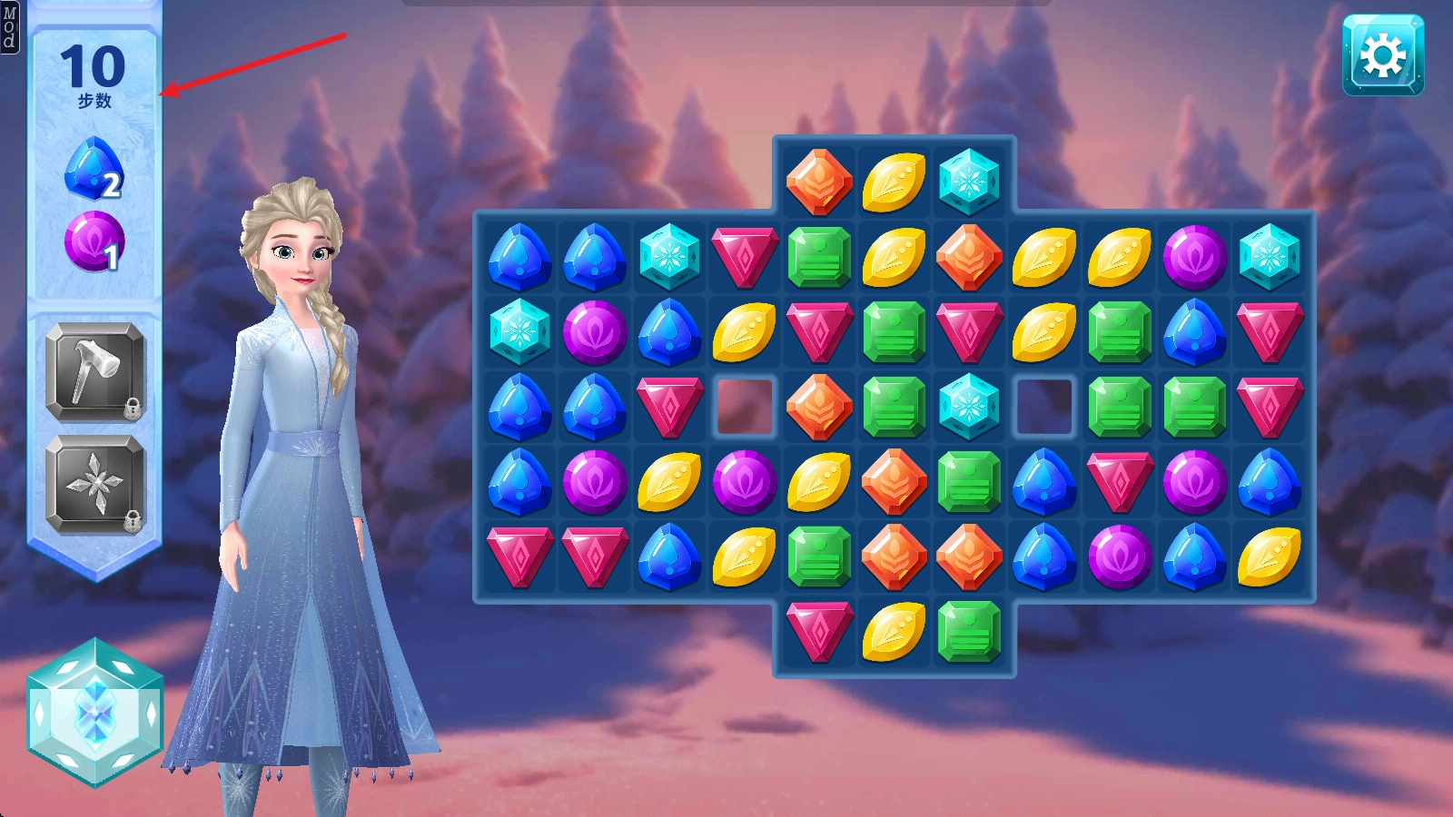 首先是趣味的三消闯关,进入后左侧能看到对应的目标和步数限制。