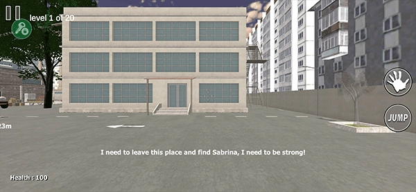 在游戏里,你需要逃离此地并寻找萨布丽娜——左侧屏幕是角色移动的操控区域,右侧则分布着拾取与跳跃的功能按钮。