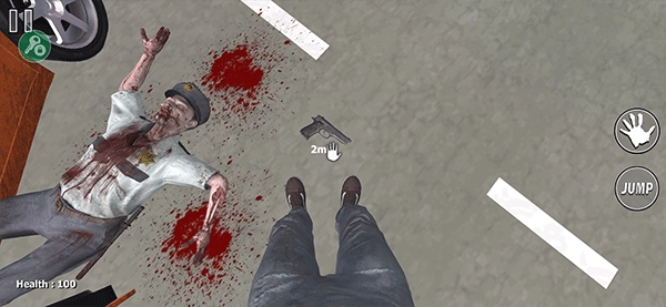 关卡里有不少游荡的怪物,它们会主动攻击你。为了抵御这些怪物,你得先找到武器,找到后点击手掌形状的按钮就能把武器捡起来了。