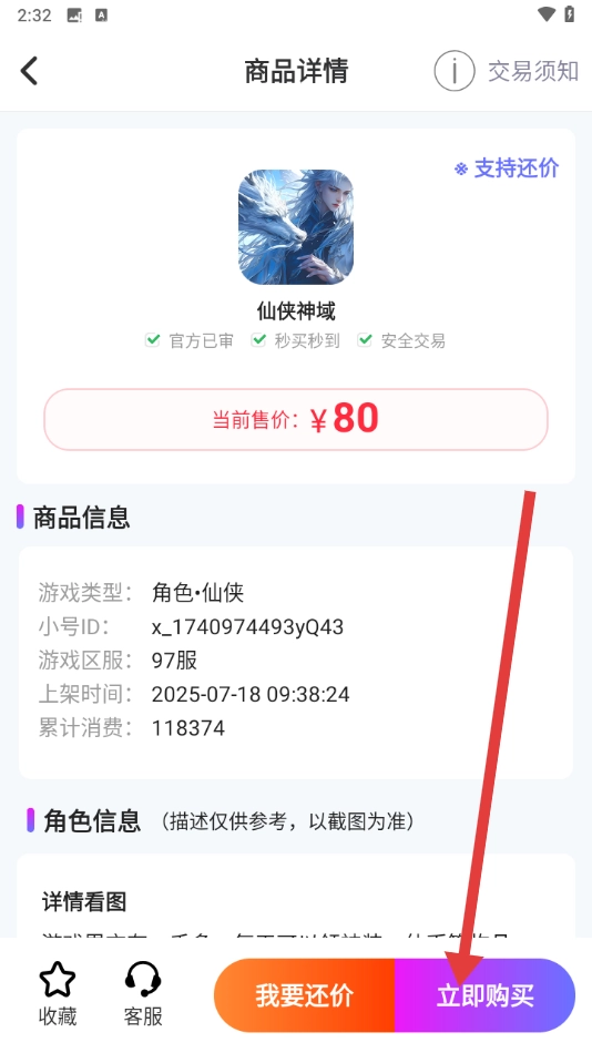 在淘游坊的商品详情页面,能清晰看到游戏区服、角色信息、上架时间、交易提示等相关介绍。平台配备全天在线客服,可快速协助玩家解决遇到的各类问题。此外,这里还会不定时更新实时游戏资讯,个人中心界面则支持实时查看交易记录。