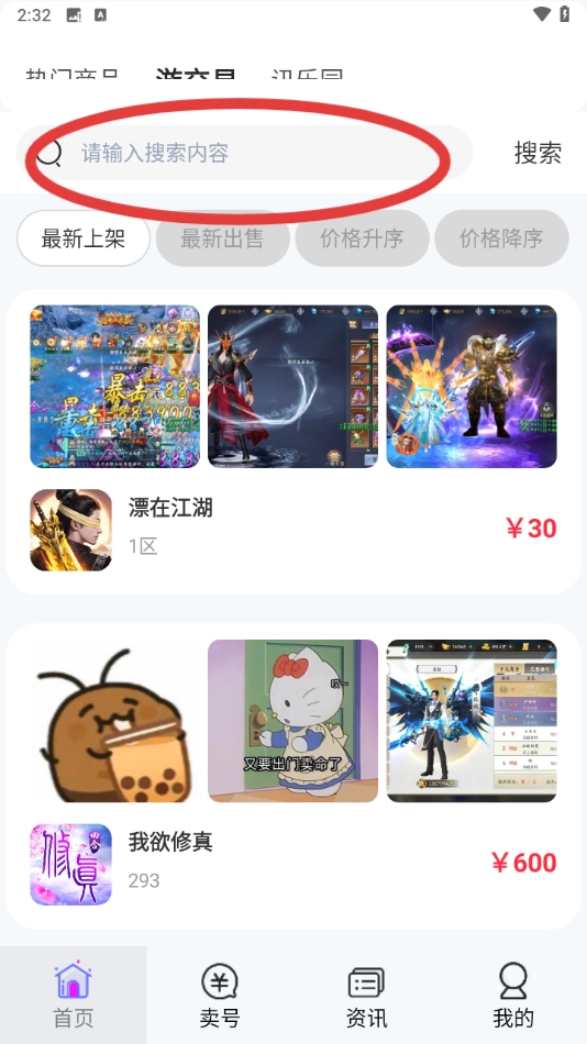 用户也能够直接输入关键词,迅速筛选出所需的游戏账号。