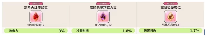 最后要提醒的是,不太建议新手玩家执着于配料的副属性,这会耗费大量资源!前期只要每个饼干都搭配一套强化到12级的配料,能满足推图需求就足够了!