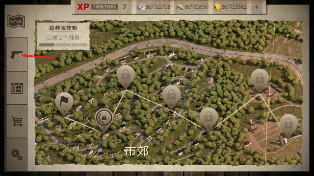 回到主界面后,点击左侧的手枪按钮进入到枪库当中。