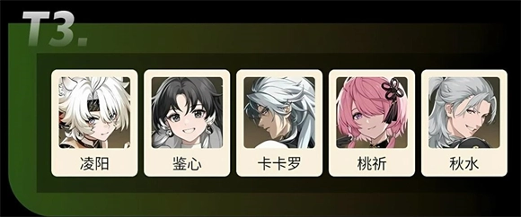 T0级角色:养成后能带来极高收益,投入资源的回报十分可观,搭配队伍体系完整且整体强度处于在线水平。T1级别的角色,强度表现良好且养成收益较高,适用场景广泛,在深境螺旋中是配队里的常驻强势选择。T2对应的是常规强度的角色,值得培养,操作上手的难度也比较低。T3角色则是指在深境螺旋中使用率偏低,同时养成性价比也不高的角色。