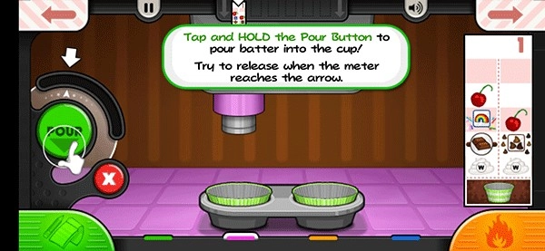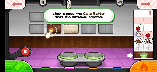 进入老爹蛋糕店游戏后,第一步是接收顾客的订单,接着切换到面糊制作区域,开始制作纸杯蛋糕的面糊部分。