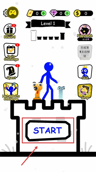 进入游戏主界面后,点击【START】按钮即可开启【Level1】的战斗挑战,以此为后续对抗装备精良的敌人提前做好准备。